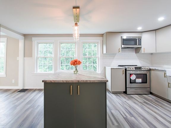 NEWLY RENOVATED 3 bedrooms & 2 full bathrooms single family home! Located on a quiet and private dead end street! Admire the serene landscape as you approach your elegant front door with tasteful wood accent in the ceiling. First floor features NEW flooring throughout, light fixtures, brand new kitchen with ss appliances, granite counter tops. Modern first floor full bathroom with double vanity. Spacious living area with endless natural light pouring in through the beautiful bay windows which overlook your garden. Leading up the newly refinished wood stairs with new railing you will find hardwood floors throughout the second level. In addition to this you have two large bedrooms, one of which being the primary bedroom with a walk-in-closet. A second full bathroom on this level is spa inspired with gorgeous finishes. Plus a bonus of additional storage space tops off this level. Electrical and plumbing have been updated. Surrounded by trees and greenery this quarter acre lot offer.