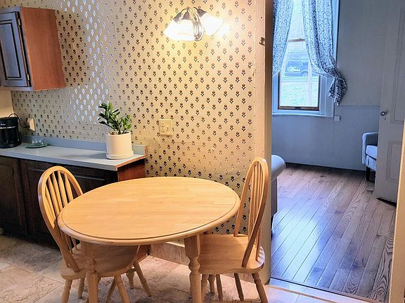 Small One Bedroom Apartment in Beautiful Historical Mansion This apartment has an eat in full kitchen with gas cooking stove. Large bathroom with claw foot tub. New hardwood floors. Coin operated laundry machines in the building, off street parking for one car, and beautiful grounds. The bedroom is very small and fits only a full size bed. The rent includes heat. No smoking building. 6 month lease. Must have good credit (application fee is $35). We will not accept anyone with an eviction on their record. Off street parking for one car only.
