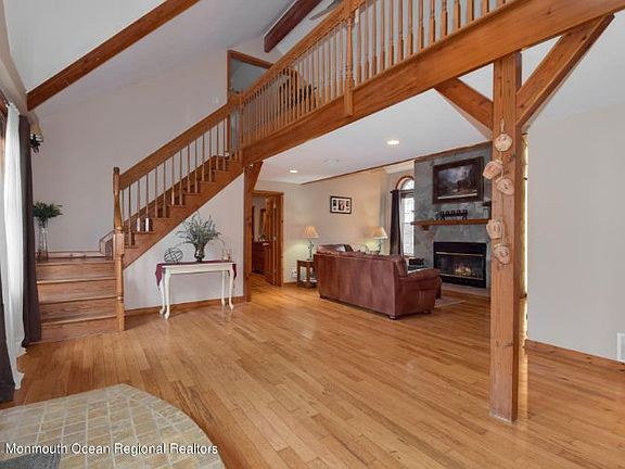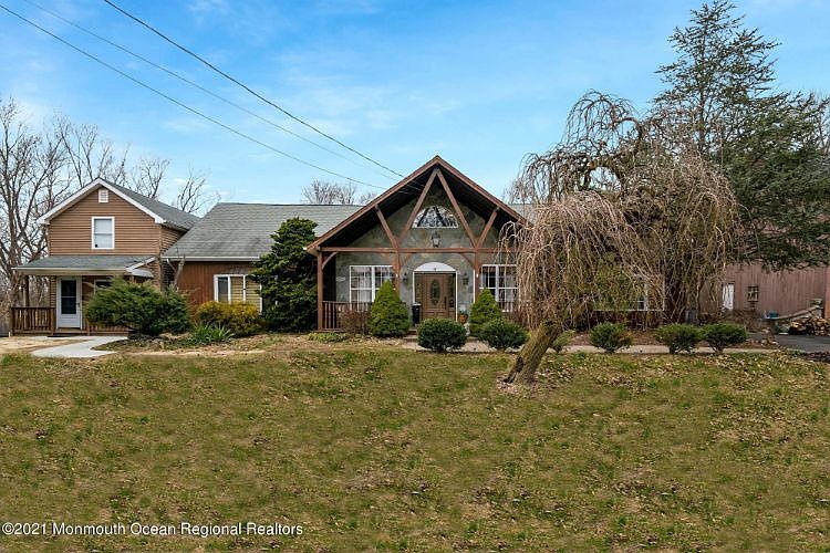 Set back off the road is a Beautifully Maintained ONE OF A KIND 4 BR 3 Full Bathroom home with open layout, exposed beams, and rustic charm! This beautiful home sits comfortably on 1.3 acres and has an Inviting front porch, 2 Story entry, living room with stone fireplace, large spacious family room with wet bar that opens up to a large kitchen with SS appliances, wine fridge, and large island. First floor master has walk in closet and private bathroom. Upstairs are three large bedrooms and a brand new bathroom. Huge deck overlooks the spacious backyard. Large multipurpose barn on property. ALL this PLUS a separate apartment with its own entrance, kitchen, living room, 2 Bedrooms and 1 full bath for mom dad, in-laws, or teens.