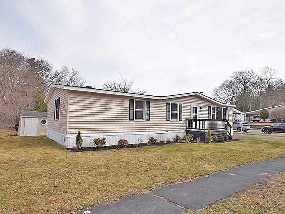 Completely and beautifully renovated 2 bedroom, 2 bath double wide mobile home in sought-after Matfield Woods, a premier 55+ community. Open floor plan with very long list of brand new features! Exterior has brand NEW : shutters, freshly painted vinyl siding & carport, newly built and painted decks, and landscaping. Interior has NEW : kitchen, 2 new full bathrooms, all new vinyl plank flooring, stainless appliances, electric HW tank, heat pump, fresh paint throughout, six panel masonite doors, slider doors, light fixtures, electrical outlets & switches, etc. Gorgeous white cabinet kitchen has quartz countertops w/ breakfast peninsula. Spacious vaulted ceiling living room has fireplace. Main bedroom has new full bath w/ double quartz vanity & shower stall. Cool central air. Great location w/ quick access to routes 24, 495, 28, 104 & 106. HOA Fee includes taxes, water, sewer, trash, road maintenance. Come see today!!