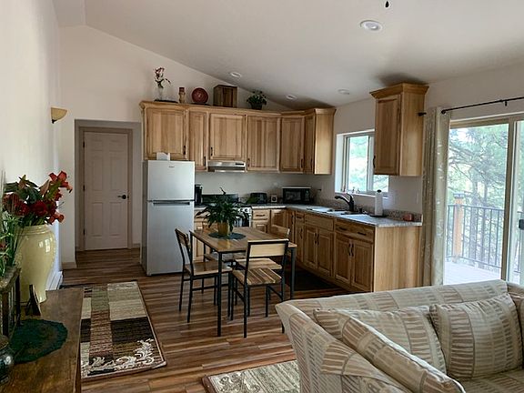 A private new residence on second floor, over garage, and attached to existing dwelling with its own private entrance ~ 2 miles from downtown Pagosa Springs, Colorado in a mountain terrain area. Fully furnished 860 sq. ft. 2 bedroom, 1 bathroom, full kitchen, dining room, living room, Includes utilities. Washer and dryer n/a. Garage n/a but plenty of parking. No pets. No smoking Walk out deck Just bring a suitcase of clothes. Everything is here for you. There is no lease terms. Rental is available on a month-to-month basis with a security deposit of $1000.00