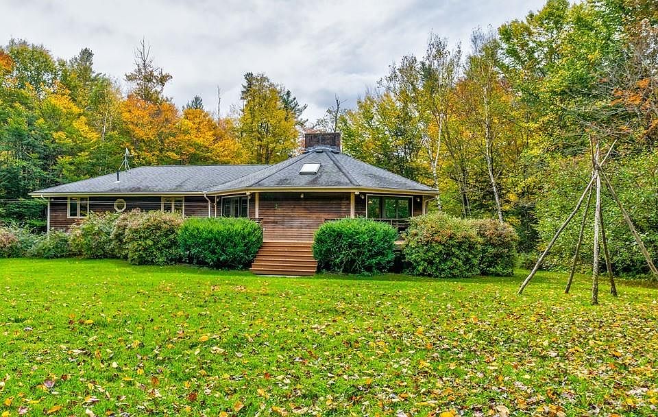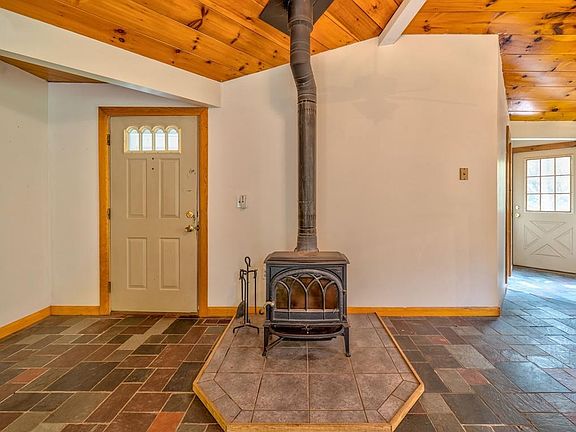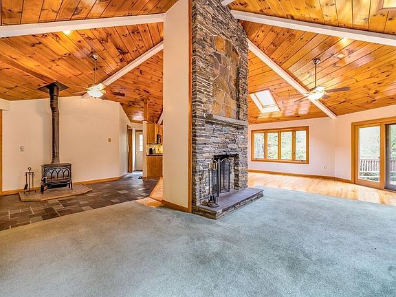 Looking to get away from it all? This Contemporary Ranch could be the abode you look forward to coming home to every night. Set back off of the road on 6.5 acres sits this newer home offering one level living and a great room that will leave all of your friends green with envy. When you enter the front door, you'll be greeted by a one of a kind octagonal wood ceiling with a soaring stone fireplace and an open, airy feeling. The renovated kitchen features plenty of counter space and a large island for seating or food prep. The freshly refinished HW floors lead you to a dining area w/ access to the large deck leading to the yard. A convenient laundry room/pantry is perfectly situated for easy living. Down the hall are 2 bedrooms, a full bath with linen closet & a master suite complete w/ a full bath with double vanities and a slider leading to yet another deck. You'll love the Jotul wood stove on chilly nights! A hunting, fishing, snowmobiling, snowshoeing, bird watching paradise!