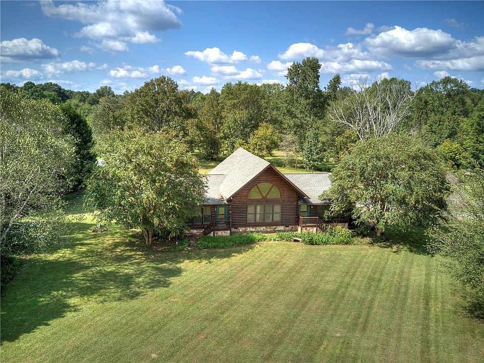 Don't Miss Out On This Unique Opportunity!! Lovely Log Home on 5 acres of beautiful and level land, this setting has it all! 2 BR / 2.5BA split bedroom plan, with a huge loft, that could be configured into an additional bedroom. Brighten your day with wall of front windows and the radius topped window, enjoy the exposed large beams of the great room's vaulted ceiling, and it's almost time to cozy up to the stone front fireplace w/ gas logs. You'll find an expanse of hardwood floors through most of the main level, with tile floors in the kitchen and baths. A very efficient kitchen, with plenty of cabinets and counter space for all of you meal preparations. Smooth-top electric cooktop, wall oven & microwave, dishwasher and refrigerator are all included. Close by, is the pantry and stacked washer /dryer unit that also stays with the home. An oversized primary suite, with walk-in closet, and bath with garden tub and separate shower. The adjoining sunroom can be a relaxing retreat to read or to place & enjoy your favorite greenery. On the opposite side of this home you'll find the large bedroom #2, connected to its own sunroom / office area or? Also featuring its own full bath, and connected to the hall 1/2 bath for convenience. Take a few steps up the grand stairway to the loft, overlooking the great room, with picturesque views through the large radius top window of the front lawn & garden area. Utilize this room for a guest area, office, or convert to an additional bedroom. Outside you'll find the mini-orchard with apple, peach & pear fruit trees , all adjoining a small spring. alongside the front driveway are Irises that bloom in the Spring, then there's the garden area, with blueberry bushes, strawberries, and an assortment of wild flowers awaiting their time to show you their true colors! The 11x17 outbuilding is perfect for all of your lawn tools. A small wet-weather creek runs through the backyard, and for those who need a place to work, is the large 20x20 workshop, plus the 20x25 covered carport area for parking your toys, boats, RV, etc. Where else can you find all of this on 5 beautiful & level acres, close to parks, schools, and the opening of the new Food Lion grocery store, and to downtown Cartersville! Don't Delay... See This One Today!