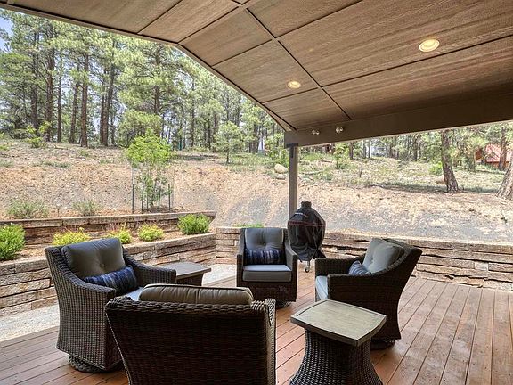 Luxury Packed Modern Mountain Beauty-Within site of Lake Pagosa and access to miles of Pagosa Springs Trails! Built in 2019 and even more gorgeous today...Sleek low maintenance single level design-1578 sf of heated living space with 3 bedrooms and 2 baths, Plus 2 car attached garage, covered entrance walkway, and vaulted lighted covered back deck. The airy gourmet chefs kitchen with eat-in oversized granite topped island, stainless appliances, pantry, quartz stack stone fireplace and additional dining are all perfectly placed beneath the vaulted ceiling of the great room. Retreat to your private haven with large walk in closet, and spa bath with solid granite topped double sink vanity and frameless glass walk in shower. Seamless access to the private covered deck oasis lined with beautiful flower beds and tucked amidst the Ponderosas can be found through both the primary suite and great room. Two spacious guest rooms and full bath are optimally situated to ensure quiet solitude for all. Rich upgrades and more upgrades! Solid knotty alders doors, granite countertops throughout, lush landscape with Aspens, Navien tankless hot water heater, solid redwood decks, oversized single basin kitchen sink... This lovely property is walking and biking to everything uptown without ever getting on a main road and has all central utilities including natural gas. As an owner in the PLPOA you have access to the staffed recreational center, club house, fish stocked non motorized lakes and forest gates. Pagosa's world renowned Hot Springs, Wolf Creek Ski Area and multiple restaurants, shops and cafes are only moments away. A superior quality offering at this price point! Call to schedule your showing.