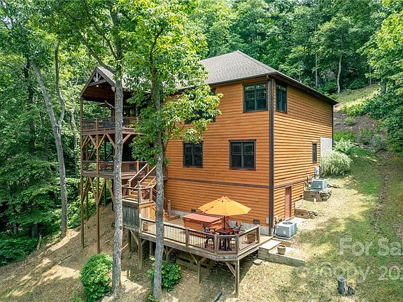 Gardner drive is a private road beneath a canopy of hardwoods that leads to just nine homes. There is a sense of wonder that is felt as you make your way towards the top. Nature is bursting all around you. As you enter the almost two acre lot, you are greeted by a variety of perennials, ornamental grasses and stonework. There is a peaceful feeling amongst the trees. The home showcases the serenity and privacy of the land with beautiful Craftsman windows and over 800sf of western facing, multi-level decking. To the northwest, 13 acres of undeveloped land in Indian Falls adjoins this lot, making it feel like you are deep into the forest. Inside, enjoy two large open living spaces for family and friends to gather and play. The primary bedroom connects with a large bathroom with a split vanity design, walk in shower and soaking tub. A custom walk in closet provides excellent organization. Find peace and tranquility nestled in the trees, just 15 minutes to the heart of Asheville.