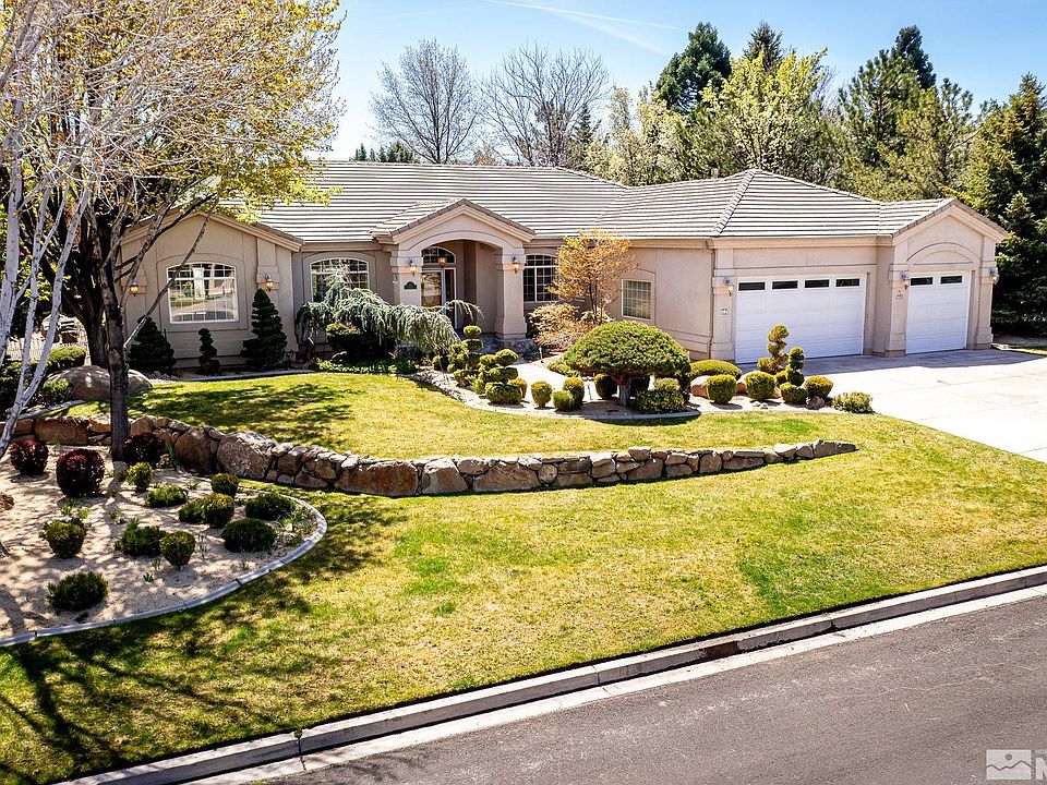 Single level Fieldcreek Ranch home on 1/2 acre. Incredible yard with mature landscaping and patio. Vaulted ceilings, lots of storage, and spacious rooms. There are very few single story homes of this size in South Reno at this price point. Very low HOA dues ($13.75/mo). Zoned for Galena High School. Close to town. Upgraded furnace., ... Beautiful single level home in Fieldcreek Ranch on 1/2 acre! Separate living and family rooms, formal dining plus eat-in kitchen. Large primary bedroom includes two walk-in closets, separate vanities, gas log fireplace, and backyard access. Convenient access to skiing and Lake Tahoe. Low HOA dues. Formal dining could make a nice open office. Historically, this road has been on the snow plow route. This sheltered location also enjoys lower wind levels. The yard extends beyond the small fence.