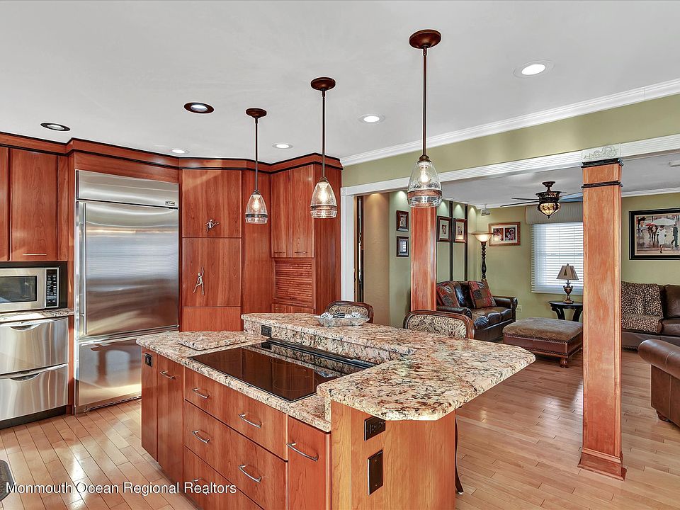 . Totally upgraded home exudes charm & character. Open layout is perfect for multi-family living & lends itself to entertaining . Gorgeous kitchen w/2 level center island w/seating, open to dining area & livingrm. G.E. MONOGRAM ref. ,walk in pantry,2 door dishwasherDacor oven w.warming drawer,whole house water filter. Decorative molding ,incl.shadowbox,,chair , base & crown molding.Custom stair railing & steps. All bathrooms redone, incl mbr bth marble flring,furniture quality vanities Wood flring 2nd flr, wood like ceramic 1st flr. Plantation shutters most bedrms. Recessed liting 6 panel doors, custom front door.Entertain on decks both levels of home. Lg level yd bordered by trees. Room to toss a football.Close to shopping, NYC bus & highway sellers accepted an offer . in atty review