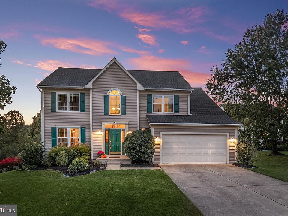 Fabulous colonial located in the highly sought-after Eagleview Estates Community! Enter into the two story foyer graced with hardwood floors that flows into the formal living and dining rooms perfect for entertaining family and friends. The eat-in kitchen is equipped with a center island, decorative backsplash, undermount lighting, pantry, ample cabinetry, and a spacious breakfast room. The family room, conveniently set off the kitchen provides access to the tiered deck with amazing views. Laundry room, powder room, and garage access finish off the main level. Upstairs the primary bedroom is a true retreat. It boasts soaring vaulted ceilings, walk in closet, and a luxurious en-suite full bath featuring a separate walk-in showers, soaking tub, and dual vanities. Three additional well-appointed bedrooms and another full bath on this level ensure comfort for the whole family. Moving to the lower level, you will find a game room, which offers versatility in its use. This space offers direct access to the backyard and is ideal for entertaining or spending quality time with family and friends. An additional full bath on this level adds convenience, a bonus room perfect for a home office, and there's plenty of storage space for all your belongings. Recent updates include washer, dryer, roof HVAC, luxury laminate plank flooring, carpet, and more! Exterior Features, two-car attached garage, tiered deck, patio, cul-de sac, sidewalks, and backs to trees.