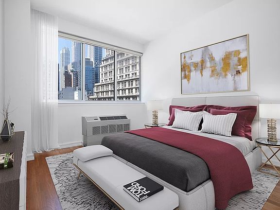 40 Gold Street is a modern boutique rental development in the heart of the Financial District with 56 units, comprising 40 two-bedrooms and 16 studio residences. Designed by Meltzer/Mandl Architects, the apartments are beautifully laid out with high ceilings, red oak floors, and floor-to-ceiling closets. All apartments feature modern solar shades for the oversized windows that allow for maximum privacy while allowing light to infuse throughout. All two-bedroom apartments benefit from split wings and 2 full bathrooms for optimal privacy. Kitchens are fitted with custom wood cabinetry with self-closing drawers, granite countertops with glass backsplashes, and include stainless steel appliances from signature manufacturers as GE, LG, Samsung, and Fisher Paykel appliances, plus dedicated ice-makers. The porcelain-tiled bathrooms feature Duravit and Toto toilets and Kohler sinks and hardware. Many bathrooms have a window as well.