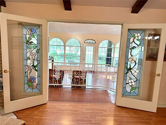 Spanning over 2,800 square feet, this one-of-a-kind home sits directly on the tee box of the golf course, offering unbeatable views and a front-row seat to the action. The highlight of the home is its massive entertaining room, lined with walls of windows and accented by gorgeous stained-glass details that fill the space with light and character.