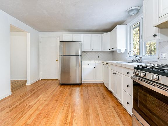 Goose Point Gem! Deeded rights to Shallow Pond at the end of this tree-lined cul-de-sac. Lovely home ready for you - Sun-filled Living Room with Hardwood Floors and Fireplace opens to the Dining Area with sliding glass door to the Deck overlooking the Private Yard. The Kitchen offers a Breakfast Bar and plenty of great storage, Gas Range and Stove Hood. Three good size Bedrooms, one with a Private En Suite Full Bathroom. Second Full Bathroom with Tile. Walkout Lower Level with Laundry and sliding glass door to the Private Backyard. Nice one-bay Garage. Refinished Hardwood Floors throughout. Freshly painted Kitchen. Roof in 2008, Boiler and Hot Water Heater in 2018. Beautiful Shallow Pond access just a short walk. Wonderful House in a Great Location.