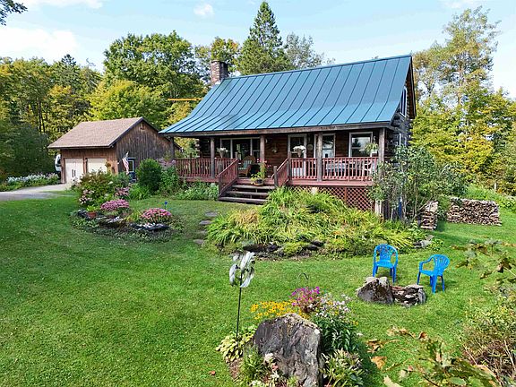 On 3.5 acres of tranquil countryside, this inviting log home offers the perfect blend of privacy, scenic views, and the charm of perennial gardens. As you step onto the covered porch, you'll immediately feel at home, imagining peaceful mornings with a cup of coffee and your favorite book in hand, looking out onto the the White Mountains. Inside, the warmth of the spacious living room with a wood stove sets a cozy tone, complemented by a welcoming dining area and kitchen. The main floor features a convenient full bath and a comfortable bedroom. Upstairs, two additional bedrooms and a half bath provide ample space for family or guests. Storage is never an issue, with a full walk-out basement plus a detached two-car garage offering even more storage above. This property feels like a serene country retreat, yet you're just minutes from Route 2 and the charming village of Danville, known for its vibrant community events, restaurants, and stores. It’s a place where the beauty of the Northeast Kingdom truly shines—a wonderful place to call home.