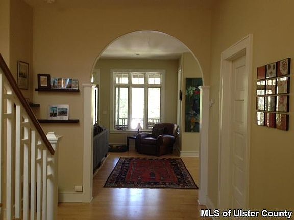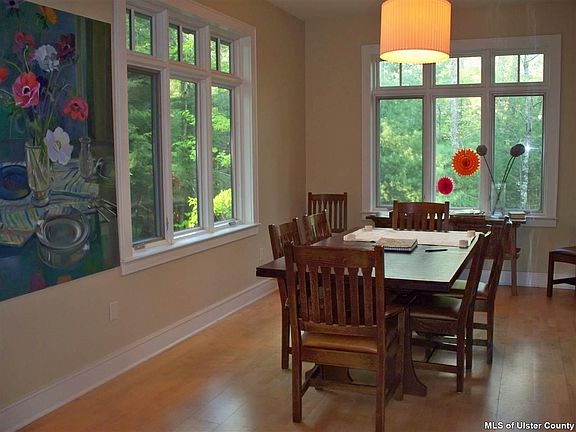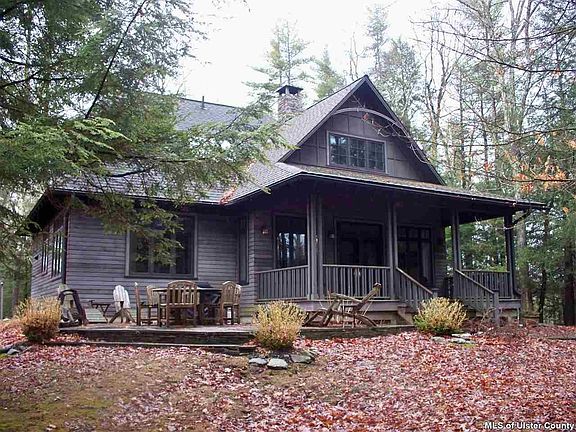 ABSOLUTE PRIVACY WITH LAKE. This is that rare property that is in complete seclusion with much desirable Lake Frontage. Sophisticated Arts and Crafts design filled with fine architectural detail. Beautiful entry leads to gracious large windowed rooms bringing the natural majesty of the property indoors. Living room with locally sourced fieldstone fireplace has French Doors leading to a large covered porch and exceptionally designed bluestone terrace. The kitchen, with windowed seating nook, is designed for the cook with handsome cabinets, marble countertops, built-in cutting block and large pantry. Striking windowed dining room. Two spacious en suite bedrooms upstairs plus third bedroom or library/office on the first floor. Radiant heat and a fully automatic backup generator, and an air to air exchanger and remotely controllable thermostat all enhance the ease of living in this exceptional property. Outdoor shower nestled in the woods. Over 16 acres of sun dappled woodland...and rarely found and much desired LAKE FRONTAGE on an amazing, private and quiet Lake.