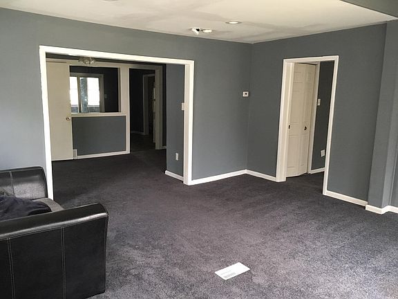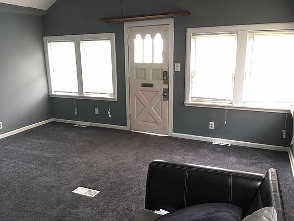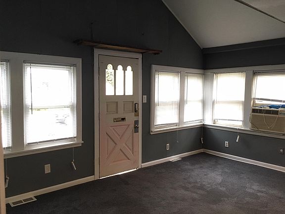 1.5 story Bungalow . 2 car Off street parking . Standing seam roof. Red vinyl siding.