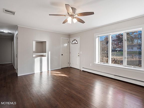 Nestled in a peaceful and private setting, this beautifully maintained 3-bedroom, 1-bath home is a true gem. The property boasts a spacious layout, perfect for comfortable living, and features a large back deck ideal for entertaining or simply enjoying the serenity of the surroundings. A standout feature is the oversized garage, complete with office space and abundant storage, making it perfect for hobbies, a workshop, or working from home. The expansive driveway provides ample parking, while two additional sheds offer even more storage solutions. The generously sized yard offers endless possibilities, whether you're looking to garden, play, or relax in your own outdoor oasis. Conveniently located just minutes from Route 9, you'll enjoy easy access to shopping, entertainment & GSP