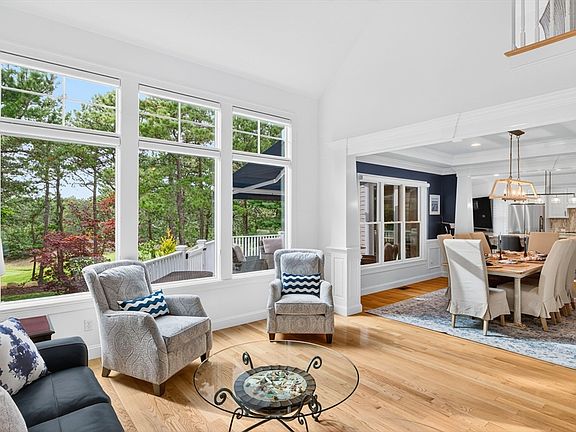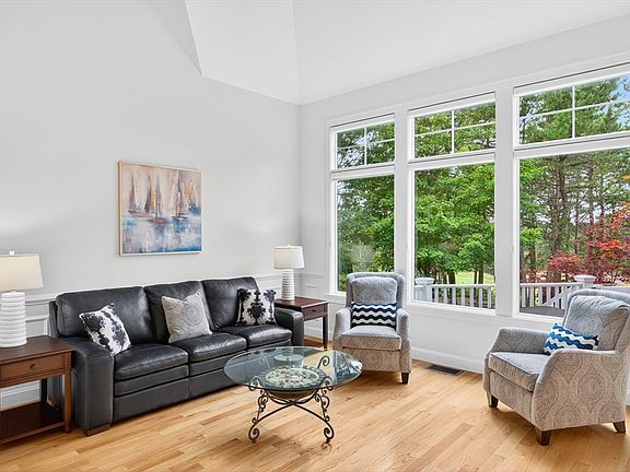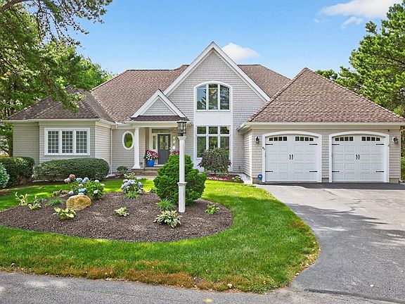 Custom 3 bed (feels like 4 bed), 5.5 bath home by Whitman Homes w/ beautiful views of 13th tee box + fairway of Jones Course. Special features include fully renovated kitchen, tray dining room ceiling, stone gas fireplace in spacious living room w/ vaulted ceilings, sun shade & ELEVATOR to all 3 levels of home. 1st floor primary suite has large bay window, gas fireplace, 2 large walk-in closets, and 2 renovated his + her primary baths. Chef's kitchen w/ double ovens, center island w/ single slab of granite, large pantry, dishwasher + upgraded cabinetry. 2nd level includes 2 bedroom suites w/ ensuite baths, and large loft. Hardwood throughout all main living areas. Additional living space in finished lower level featuring bonus rooms, full bath, and spacious great room w/ French doors leading to private cobblestone patio + professionally landscaped yard. Very close to Pinehills amenities. Laundry w/ washer + dryer, whole house generator + newly painted interior. New HVAC + Water Heater