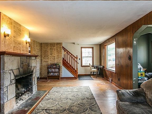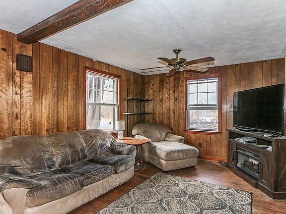 Back on market! Priced to sell 'as is'. Spacious cape located near end of dead-end street. Lots of potential for investor or savvy buyer to bring back its original charm. Enter through vestibule with plenty of room for hooks or closet. Spacious open living room with fireplace and built-ins.4 Bedrooms, 3 on second floor. Very large kitchen with spacious eating area, slider to deck to wooded back yard. Stainless refrigerator. Hardwood floors in living room and hallway. Large outbuilding in backyard with hot tub in 'as is' condition. Woods in back belong to town, apo. Property will not qualify for FHA or VA loans.