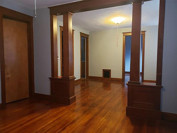 Nicely updated 1st floor apartment with refinished hardwood floors! Large kitchen, separate dining room and 2 enclosed porches. Updated windows, kitchen and bath. Large rooms, high ceilings, nice wood trim through-out and big back yard (shared with other tenant). Close to busline and grocery store. Ready to move in to!