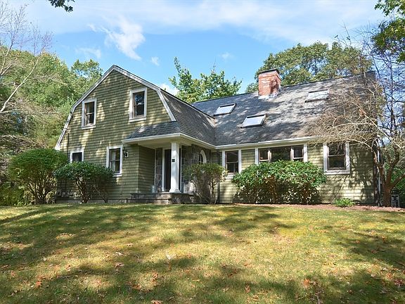 Quality Craftsmanship is on full display in this Classic New England Shingle Style Cape on a private, tree-framed 1.5 acre lot. Soaring ceilings with lots of natural light, open floor plan, skylights, quality wood finishes and stone fireplace. Cherry and granite kitchen with breakfast bar is wide open to the oversized dining room. Two master suites each with private full baths, conveniently set on first and second floor (direct exterior access to 2nd floor deck). Plenty of remote work options or set up for home business having 3 home offices , half-bath and separate dedicated entry. Walls of windows in the sunroom showcase the views of the large patio, firepit and fully fenced sprawling grounds. Fabulous condition full size 2-story 26'x36' BARN with upgraded powertool electric supply, 12' ceilings on first floor and heated 2nd floor with cathedral ceiling.