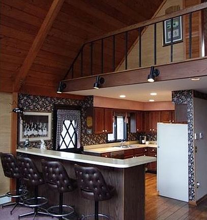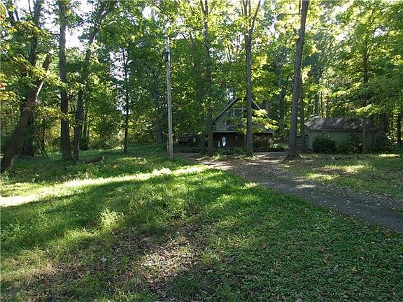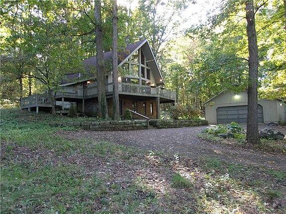 Take advantage of this opportunity to own a stunning A-Frame home on a wooded lot. An open and inviting interior with soaring cedar vaulted ceilings and two stone fireplaces. The main floor kitchen opens to dining area and great room showcasing the stone fireplace. The two sets of sliding doors make it easy to step out to the spacious multi level decks. Two bedrooms and a full bath accommodate the home owners or quest on the main floor while the comfy loft offers the master suite that opens to a back outdoor deck and a front open balcony over seeing the great room. The finished lower level family room with an additional stone fireplace pit and a wet bar. All three levels are reachable by a beautiful spiral black wrought iron staircase. Plenty of wooded property to enjoy.