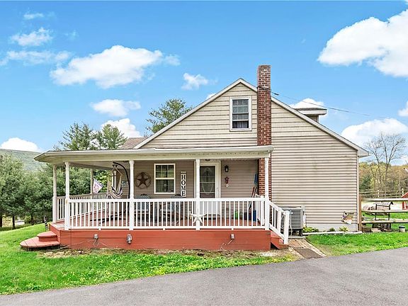This charming Palmerton Cape Cod offers 3 bedrooms and 2 full bathrooms, perfect for any family. The beautiful wraparound porch is where you can sit and relax with your morning coffee or evening tea. Inside you will find a spacious dining area & full equipped kitchen. The large living room features laminate flooring, providing a cozy space for family & friends to gather. A first-level bedroom & full bathroom make it convenient for those who want to avoid stairs. The upper level is finished with two additional bedrooms & full bathroom, perfect for children or guests. The full basement provides ample storage space. The detached oversized 1-car garage with a covered porch area is perfect for those who need extra space for hobbies or additional vehicles. The fenced-in yard provides privacy & security for your loved ones & pets. Additionally, an additional parcel is included, providing over a half-acre of property, giving you the space to enjoy the outdoors & entertain guests.