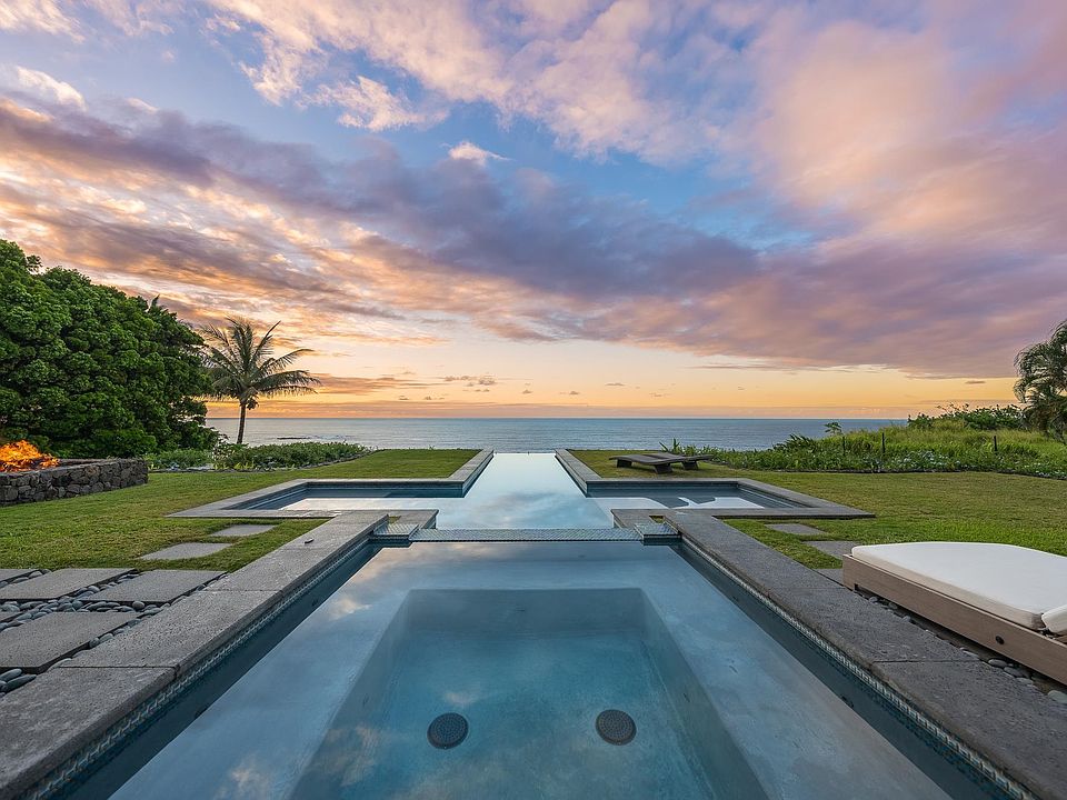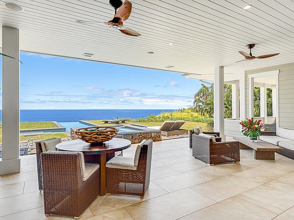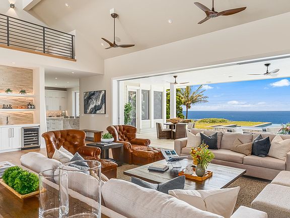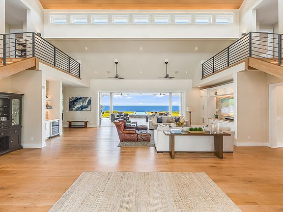 Hawaiian living at its finest! This cliff side property is perched over the sea, capturing dynamic ocean and full sky views from nearly every room. The gated property is surrounded by fruit trees and a wall of Podocarpus trees giving the owner true privacy. Entering the Great room you're greeted by nearly 30’ ceilings, and views over the spa and infinity pool to the sea, large glass pocket doors, + a stylish outdoor living room on the oversized lanai. Spacious gourmet kitchen: Sub Zero and Wolf appliances, waterfall countertops, walk-in pantry, plenty of kitchen storage, high ceilings. Screened dining room with huge views, perfect for entertaining. Ground-level primary wing: luxe indoor bath, indoor and outdoor showers, generous private lanai, his and her walk-in closets. 2 guest primary suites: Each has its own private lanai, extra-large bath w/ shower room, views out to the rugged coastline. Laundry room, office, oversized 2 car garage, gym, fire pit, and extra-large concrete driveway for entertaining. This fenced in, ultra-private parcel is zoned to allow building of another ohana. Or leave as serene, open space. The home also has a separate “nohana” with its own entrance, parking, lanai, bath, and private views to Haleakala. If you’re looking to pair very comfortable, private living with all of the natural wonders of the north shore of Maui, you will be more than pleased to view this beautiful home.
