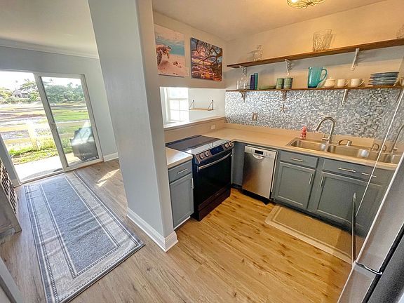 Step inside to find a bright, breezy space filled with natural light, brand new fridge and stylish luxury vinyl plank flooring throughout. Freshly painted walls and lush green foliage dancing outside every window create a relaxing, beachy atmosphere you'll love coming home to.