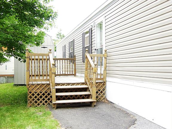 Bright and sunny single wide Brentwood model on corner lot in desirable town of Exeter. 2 bedrooms, tile floors, carpet, ceiling fans, fully applianced. Great deck for cook outs and oversized shed for add. storage. Small lawn area, 2 parking spaces and close to all major routes. Welcome to Exeter! And welcome home!