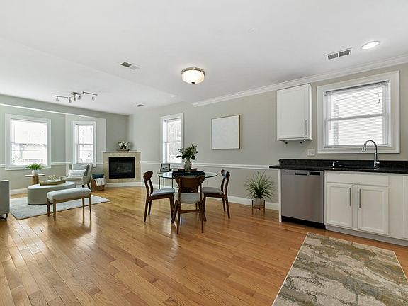 This light and bright 1 bedroom, 1 bathroom condo at the foot of Jones Hill has it all- parking, in-unit laundry, additional storage & central AC! The spacious open concept floor plan is flooded with natural light and perfect for entertaining with a gas fireplace, livingroom/diningroom combo and well-appointed cook’s kitchen with granite countertops, stainless appliances and plenty of cabinet space. The bedroom easily accommodates a queen-sized bed. Additional features include hardwood floors, ample closet storage throughout, in-unit laundry, 1 parking space at rear of building, additional storage in basement and video intercom for entrance. Updates include professionally painted throughout and new HVAC in 2022. Easy access to highways, public transport, local restaurants, shops, conveniences & so much more!