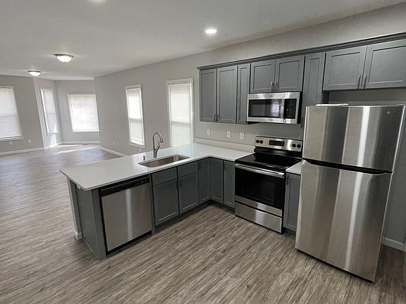 Come check out this gorgeous apartment! Everything is brand new in this 2 bed 1 bath open floor concept! Stainless steel appliances, private parking, washer and dryer hook ups located inside unit. Energy efficient forced hot air furnace. First last and security required. Utilities are separate. Lawncare and snow removal provided by landlord. Water included. Month to month