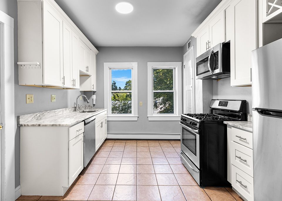 AVAILABLE NOW and through August 31st. Luxury living at an affordable price in Roslindale! This recently renovated, floor through, sun-drenched, top floor unit is available now. FANTASTIC LAYOUT WITH A WALK-IN SHOWER! KITCHEN: -Stainless steel kitchen appliances including dishwasher -Beautiful slow close shaker cabinets with luxury stainless steel handles -Granite countertops -Gas cooking BATHROOM: -Spacious walk-in shower that features a trendy Carrara inkjet tile -Contemporary vanity 2 BEDROOMS: -Massive primary bedroom -Both bedrooms offer ample closet space AMENITIES: -Common BACK DECK - Perfect to enjoy the great weather! -PET FRIENDLY! -The unit is outfitted with an energy efficient heating thermostat -Intercom system - 2 OFF-STREET PARKING SPACES! -Deeded storage space -FREE laundry located in the building. Enjoy the many amenities of living in Roslindale, such as the convenience to the MBTA and the Farmers Market held in Adams Park in the summer and fall. NO BROKER FEE! Lease from September 1 through August 31 (12 Months). Rent includes: Parking, Water, Sewerage Disposal, Refuse Removal, Snow Removal, Grounds Maintenance, Extra Storage.