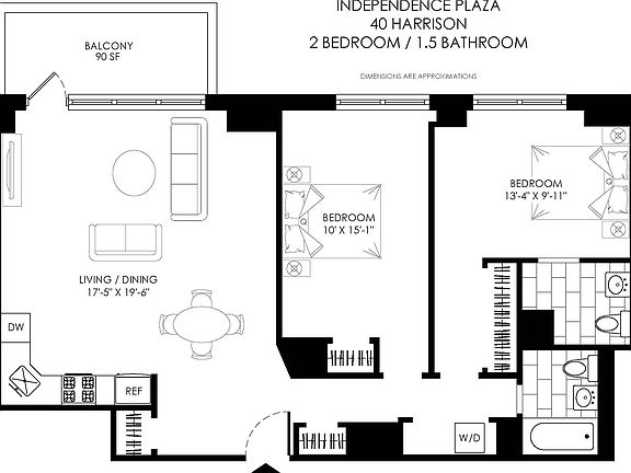 Welcome to 40 Harrison Street, a well-maintained building in the heart of Tribeca offering a spacious two-bedroom, 1.5-bathroom apartment.