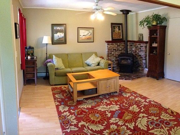 - Fireplace features: wood stove