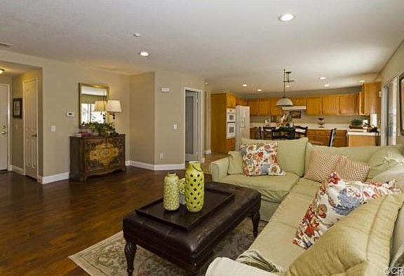 Beautiful home on a private lot, must see to appreciate. Ideal open floor plan is great for entertaining friends, the kitchen is open to a huge family/media room with hardwood floors and new recessed lighting. And don't miss the custom walk in pantry... The oversized master bedroom has room for a retreat and boasts an attached master bath with an oversized soaking tub with a relaxing view, travertine flooring and a walk in closet. Larger than average secondary bedroom has a fabulous walk in closet with built ins. Two more bedrooms an upstairs laundry, a full bath and a cozy reading area are all upstairs. The two car garage is loaded with built-in and lots of storage. Walk to Santa Margarita Catholic High School, shops, Starbucks, parks, lake, etc... Established neighborhood with exemplary schools. Chill out at the end of the day with a glass of wine in your very private jacuzzi in your cozy low maintenance backyard. Yard work...not a chance just come home and just relax! Your kids will love the huge driveway to play/practice in and you will enjoy the garden like atmosphere of the front yard under the quintessential front yard street lamp and white rose bushes....Welcome to your families new happy place.