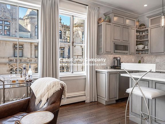 Sublime Back Bay penthouse, 2BR/2BA has been very tastefully renovated. Situated in an historic property known as the Fannie Farmer Mansion, this corner residence offers postcard views and exceptional light. From your private roof deck, you can cheer on the runners as they turn the corner on Comm Ave in the final stretch to the finish line of the Boston Marathon, or on the 4th of July, revel in the spectacle of the fireworks display. Great for entertaining, there is an open concept floorplan, plus a separate formal dining room. The kitchen is completely renovated with marble countertops, and pro-grade stainless appliances. Central Air Conditioning, in unit laundry, and a rental parking space available just across the street.