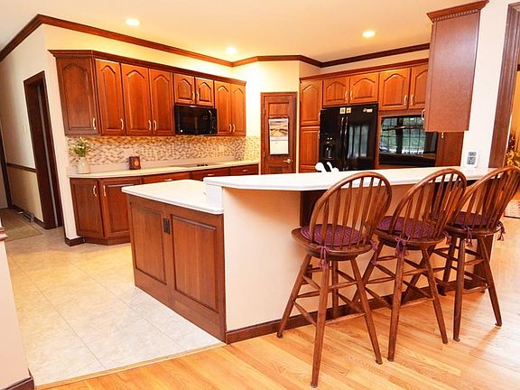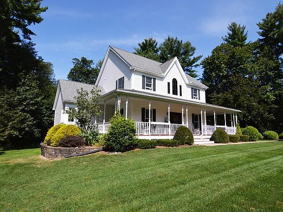 PICTURE PERFECT SETTING on private end of Cul-De-Sac Location for this Spacious Home boasting Wrap-Around Covered Porch. A Beautiful Two-Story Foyer opens to both the Formal Dining Room and Formal Living Room with beautiful Hardwood Flooring thru-out. Great Room offers cozy Stone Fireplace, Hardwood Flooring and Opens to Cook's Kitchen with Breakfast Bar, Solid Surface Counters, beautiful Cherry Cabinets offering tons of storage and practical work space, Dining Area with Slider overlooks Deck and Backyard. Main Level Master Suite offers thoughtful storage closets and En Suite Bath including separate Shower and Jet Tub. Second Level Boasts second Master Suite with En Suite Bath and two additional Bedrooms with a shared Full Bathroom. Additional living in two Finished Rooms of the Walkout Basement with potential to finish more. located on over an acre, outdoor living space abounds. In-Law Potential with very comfortable and versatile floorplan..... Welcome Home!
