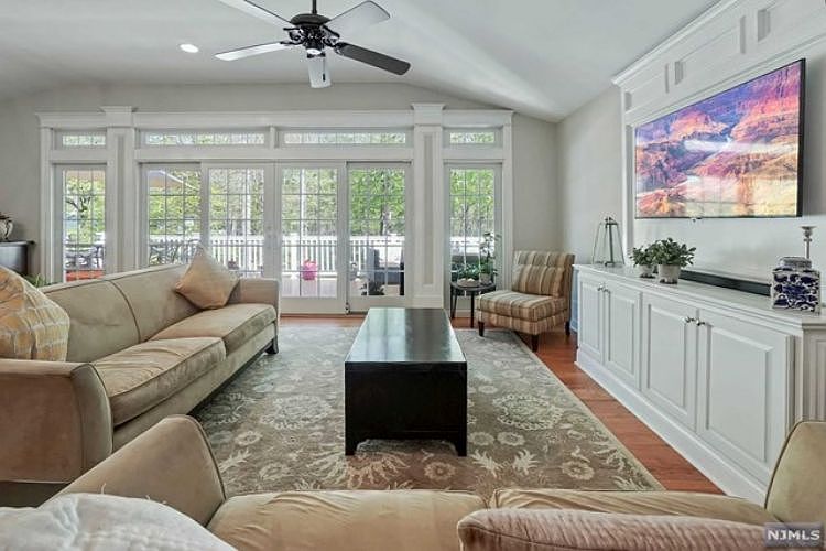 MOVE RIGHT into this elegant EXPANDED spacious home 4 bedroom, 4 bath, 2-car garage situated on beautiful level private park-like grounds surrounded by preserved land in the sought-after Collins neighborhood. Main level features open floor plan w living room, dining room, custom eat-in-kitchen, leading to a beautiful family room that opens into a large deck perfect for entertainment. First floor also includes ensuite MB with oversized walk-in closet vaulted ceilings and an updated bathroom, 2 additional BR and 2 baths completes this level. Ground floor has a BR, full bath, and a large den. Den opens into the luscious back yard. Additional features include high ceilings, hardwood floors throughout, large, picturesque windows, plenty of natural light, and moldings throughout the home. An ADDITION to the home was completed in 2015 which includes the family room, ensuite MB, and home renovation. Home has tons of storage, additional parking available in the back yard. Fresh paint.