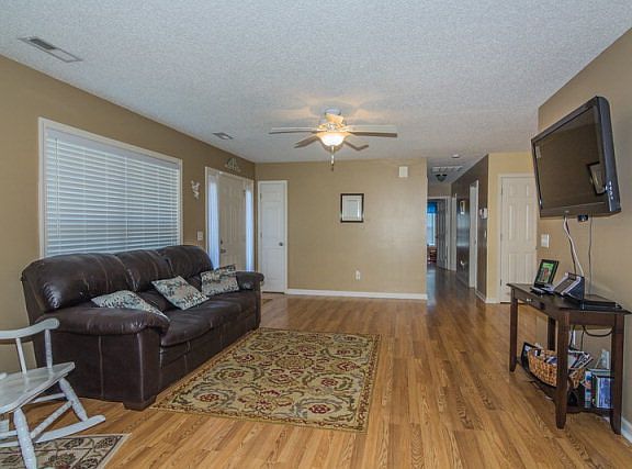 Move in ready all brick home on 1 acre in town! New laminate flooring in living areas, kitchen, and bedrooms. Ceramic tile in baths & laundry. Freshly painted neutral interior. All appliances convey including refrigerator, washer/dryer. Enjoy privacy with no HOA or restrictive covenants.