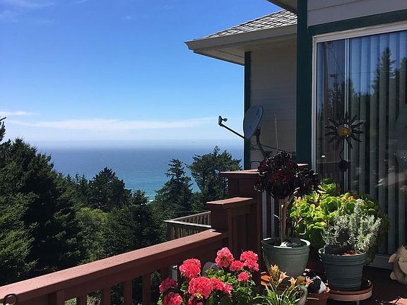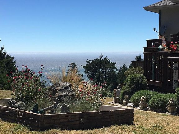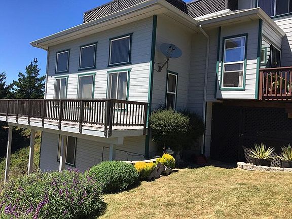 Coastal custom home with tri-level floor plan. Two large bedrooms, 2.5 bathrooms, plus bonus room. This home is permitted for 3 bedrooms. The large downstairs bedroom could become two bedrooms with a wall and closet added. Also featuring cul-de-sac privacy with ocean view decks from every level. Large master suite with sitting area. Master bedroom has an en-suite bathroom with an over-sized custom shower featuring glass block and tile. Custom kitchen with island, counter and walk-in pantry. Also features laundry room, two-car garage, three gas fireplaces, water softener, water filter system, built in vacuum attachment on every floor and a well maintained yard. Very comfortable. Light and bright. Some furniture may be negotiable. Priced to sell!