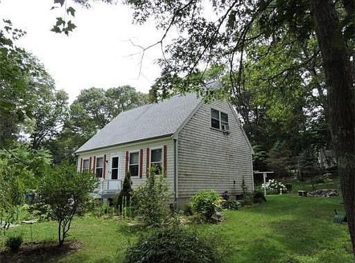 In desirable Briarwood in Mashpee - walk to great association beach on John's Pond! Lovely Cape-style home with 3 bedrooms and open floor plan. Boasting convenient first floor master, as well as handy first floor laundry! Updated kitchen with spacious dining area, and sliders out to deck with retractable awning. Recent improvements include gas furnace, roof, kitchen, flooring, shed, paint, appliances, and slider. Upstairs has rough plumbing for a second bathroom. Gorgeous flower gardens on large half acre lot. Briarwood offers private association beach, playground, and tennis courts. Priced to sell - turn your Cape Cod dreams into reality!