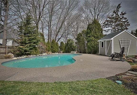 Ultra desirable Hillside neighborhood within walking distance of schools, ball fields, village and harbor. Fabulous level fenced in yard with built in pool, patios, decks and outdoor shower. Oversize family room with gas fireplace and beamed ceilings is filled with light. Newer kitchen with commercial stove is open to two family rooms overlooking the rear yard, pool and patio areas. Office/den, formal dining room with french doors and a mud room/laundry area create a highly functional floor plan. The second floor features 3 bedrooms, including the master suite and two tile bathrooms. Finished third floor has the 4th bedroom and ample storage. Great distant ocean and Village views from most rear facing widows. Fully finished walk out basement includes a family room with wood fireplace, mud room off the 2 car garage and weight room. This is a large family home in one of Cohasset's most trendy Village neighborhoods.