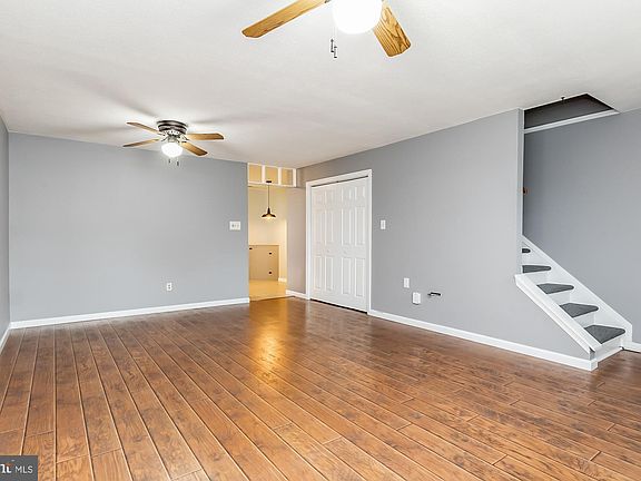 Beautiful end of group three bedroom, one bathroom townhouse. This home is the largest on the block with a permitted 12x32 addition. There are laminate floors throughout the main and upper levels. The spacious living room has two ceiling fans. The kitchen and dining room are open and airy with custom built-in cabinets and a sliding glass door that leads to the large deck and private, fully fenced backyard. There is a beautiful 4x18 above-ground round pool as well as a large outdoor shed. No HOA in this community!