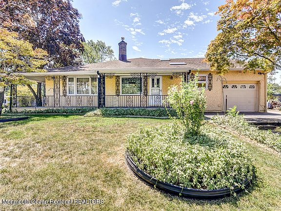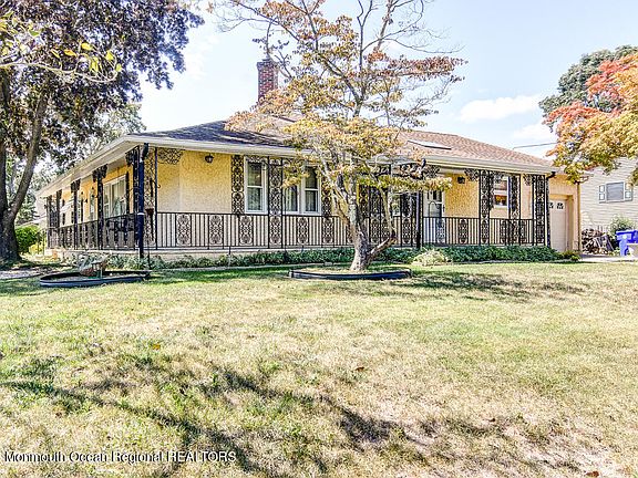 This very spacious ranch rests upon a beautifully landscaped lot with a built in sprinkler system & a well. Enjoy the awesome sprawling porch which extends from the front to the side of the home which makes a perfect setting to enjoy your morning cup of coffee or to just sit & unwind in the evening! The eat in kitchen has beautiful Terra Cotta floors & a sky light to make cooking even more enjoyable. The spacious family room boasts a fireplace with a high efficiency wood burning insert perfect for winter relaxation! Above you'll find a skylight with beautiful sea glass imbedded into it along with a bar great for entertaining with a counter top filled with sand & beachy items! Enter into another spacious room which is surrounded by floor to ceiling windows! This home won't last. Hurry!!