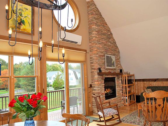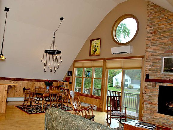 Authentic, renovated, timber frame barn with exposed beams / rustic motif. Luminous, open kitchen / great room. Wonderful spaces for quiet time or inviting guests in! Master suite on the 3rd floor allows guest/others their own space. Lower level features a Bonus Room which could serve as a great family room, office space, or studio space! Main floor bathroom features aTeak panelled bath/shower. Convenient ownership: Small Condominium style HOA of 8: Plowing & Mowing are included in fees. New Heat Pump/AC units in the great room and lower level office add to the comfort and energy efficiency of the home. Ideal location for skiing and all recreational opportunities in Central Vermont! Minutes to 89. Exposed beams & country charm!