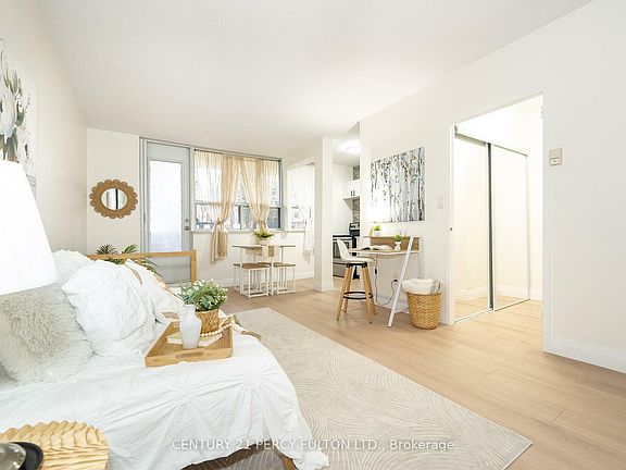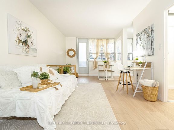 This incredible studio condo is centrally located in one of the hottest areas of Cabbage Town. This main floor unit showcases beautiful luxury laminate flooring throughout, upgraded cabinets with gorgeous white marbled quartz counters, stainless steel appliances and large windows. Two huge storage closets both with mirrored doors and a lovely full bathroom. The living room features a walk out to the large balcony where you can sit and enjoy your new unit. Let's not forget the additional storage unit for all your larger items and extremely low maintenance fees that include heat, hydro, water, building insurance and internet. The building offers parking spot rental through property management (6'2 clearance for underground), and amenities such as an indoor pool, outdoor terrace with BBQ's, Gym, Party Room, Library, Laundry Room, Bike Storage and a guest suite available to rent for a reasonable rate. Perfect for a single, couple or student.