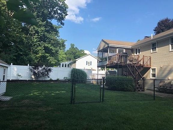 Spectacular 3 bedroom, 2 bath house with a 2-car garage located in very desirable neighborhood! One of the prettiest lots complete with irrigation, shed for storage, fenced in area, and inground pool! Enjoy your own private oasis! This house features a vinyl exterior, replacement windows, central vac, 6-panel solid doors, three season porch overlooking the grounds Many improvements including, hardwood floors, new bathroom, lighting fixtures, interior paint, closet systems, carpeting, pellet stove... Kitchen w/ granite countertops, living room with fireplace and bow window open to dining room area. Lower level has a fabulous front to back family room, wet bar with new quartz countertop, sliders out to the private rear yard, Laundry room and bathroom! Minutes from Rte 495, and Rte 95, Nothing to do but move in! Will not last!