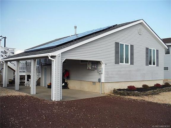 Atlantis Section. Waterfront Ranch Home with forever views. Home features 3 bedrooms, 1 1/2 remodel bathrooms. Half bath in Master. Central Air & Heater are 5 years old. Brand new kitchen with Custom made Taylor cabinets with 42' uppers; granite countertops /plenty of countertop space. Gas Stove; all appliances are new Jan 2017 Look at the views from this raised deck over the shed. all new flooring; large bedrooms. DRY Crawlspace. DID NOT FLOOD IN SANDY. Flood insurance is $600 a year. Solar panels are brand new. $68 a month - No electric bill. Gas bill is $25 a month. This is not a flip. Seller lives here. Vinyl Bulkhead with ramp and floating dock. 10 min to the bay. Great boating location. MUST see this one! 20 mins to LBI and 30 mins to Atlantic City. No HOA Fees. Public Water and Sewer. Central air is 5 years old.