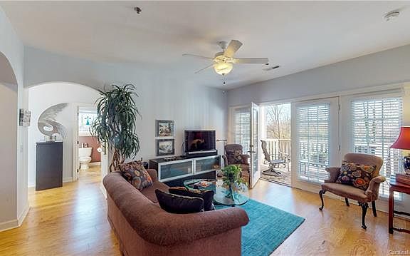 Lifelong Learning with a community of kindred spirits was never so convenient! Live in a luxurious condominium RIGHT NEXT DOOR to the vibrant OLLI (Osher Lifelong Learning Institute) at the UNCA Reuter Center. Bathed in natural light, this condo sits at the end of a quiet street close to all the amenities of city life without city taxes! Enjoy peaceful walks to the botanical gardens, just minutes away. FEEL RIGHT AT HOME in this meticulously maintained 3-bedroom, 2-bathroom home with 9 ft ceilings throughout. Resurfaced kitchen cabinets, new granite countertops, tile backsplash, and stylish pendant lights over the kitchen bar give a fresh, modern look. This spacious corner unit opens out onto two covered balconies overlooking the UNCA campus. The master closet has custom shelving, drawers and hanging rods for convenient organization. Custom cabinets between the vanity sinks in the master bathroom provide even more storage. A newer HVAC was installed 1/18.