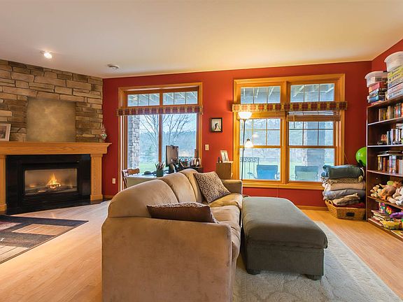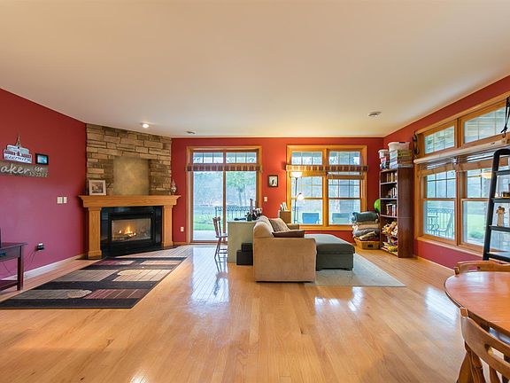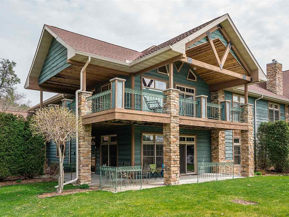 Gorgeous main level 2 bedroom, 2 bath Condo on the Upper Dells of the Wisconsin River on a quiet, dead end street yet walking distance to downtown. Beautiful views of the sandstone cliffs & river from your huge patio, master suite & living areas. Open floor plan with quality finishes throughout, including hardwood floors, stone fireplace, solid surface counters, tile baths & gourmet kitchen with maple cabinets, 8' island, pantry & laundry closet. Easy entertaining with the wrap around patio & extra "green space" of an end unit. No worries - Home Warranty included. 2 car attached garage too!