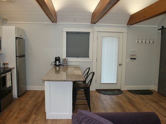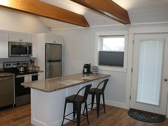 Open and light, vaulted ceilings and skylights. Property is within walking distance to Freeport town center with shopping, restaurants, galleries and parks. Located near a public transportation stop, providing access to Portland or Brunswick by bus or train. The unit has full sized, new appliances, in-suite washer and dryer, bathroom floor radiant heat and new heating system. All utilities; heat, electricity, wifi are included. Trash, snow removal and onsite parking also included. Single floor living with a separate entrance. Tenants are welcome to use the backyard and deck areas (shared space). The unit can be completely furnished or unfurnished and the owners live onsite. This is absolutely a NON-SMOKING unit. A signed lease is required for a minimum of 6 months, longer is optional. Tenants are required to pay a security deposit prior to move in. Rent is due on the first of each month. Payment may be made by check, cash or zelle. Receipts will be provided. References are required. Maintenance issues should be reported immediately to the landlord. The unit capacity is for up to two people. Visitors are welcome, however subletting or sharing of the unit beyond capacity is not allowed. Pets are allowed at the discretion of the landlord. Pet references are a bonus and a non-refundable pet deposit of $300 is required.